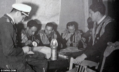 Above; "...Rückkehr der deutschen Staffeln..much back-slapping and hand-shaking as the successful fighter pilots are welcomed home. JG 3 alone claimed some 34 Ab-und-Herausschüsse on 11 April 1944, of which 16 were attributed to IV./JG 3 in this first engagement. Returning home to Salzwedel a second 'Alarmstart!' was ordered at 12:40 - IV./JG 3 reported a further eight victories, clashing with 1 BD four-engine bombers south of Rostock.