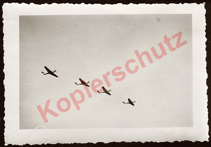 Two Rotten of 1. Staffel in formation apparently over Mardyck on the Channel coast