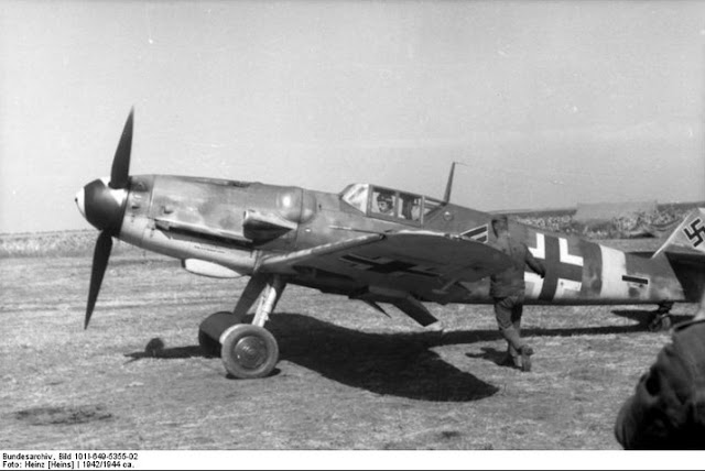 Some confusion on a couple of forums recently as to the identity of Gerd Barkhorn's Bf 109 G-6s. This post is probably not about to change that unfortunately. 'Avions' magazine recently devoted a splendid 14 pages to Barkhorn's aircraft and career with profile artwork from Thierry Dekker and a full victory list in issue No. 176 (July-August 2010). First thing to note is that the machine depicted in the lower profile (above) may not be a G-6 as captioned, but a G-5. Note in particular the lack of a windshield air intake correctly illustrated. Other pictures from a Bundesarchiv sequence clearly show the WNr. for this machine as 15909 - assigned to a G-5 batch. However other sources have 15909 as a 'stock' G-6 pointing out that WNr. 15919, one of Hermann Graf's white-tailed machines from JGr.50 and only ten later off the line was also a 'G-6'. Just to confuse the issue as pointed out by Mansur Mustafin all G-5s were constructed by Erla and they were spread among their G-6 production.
