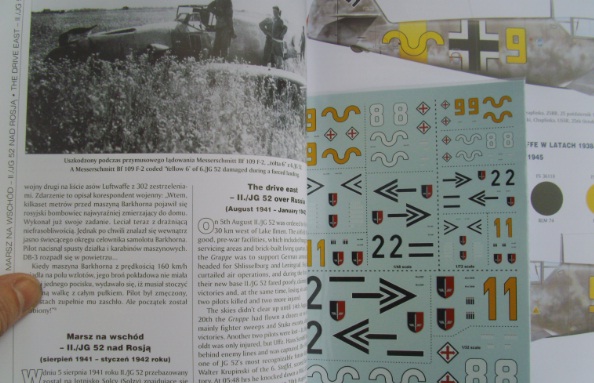 The JG 51 book covers Obstlt. Werner Molders' F-2, Lt. Hans Strelow's F-2, of 5./JG 51 (coded “Black 10” in winter camouflage), Fw. Werner Bielefeld's F-2 of 7./JG 51 (“White 11” as seen on 11 July 1941), Staffelkapitän Oblt. Erich Hohagen's F-2 “White 1” of 4./JG 51 and another Staffelkapitän, Oblt. Heinrich Krafft's F-4 of 3./JG 51, W.Nr. 7221, “Yellow 7” as photographed in February 1942 - all in all two superb decal sets.