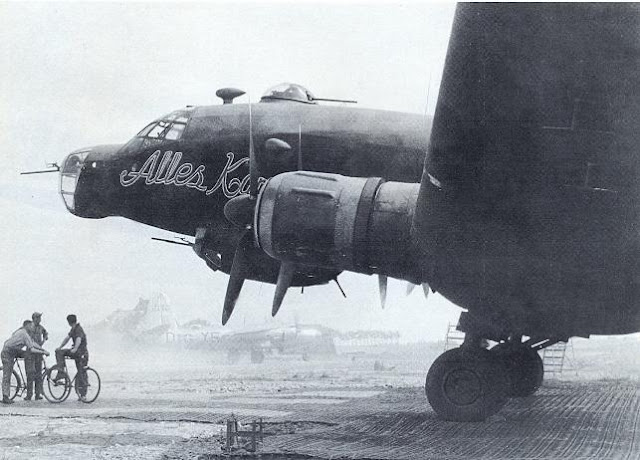 It is perhaps not generally realised that the Luftwaffe did actually put into service a number of four-engine bomber types. One of these of course was the Junkers Ju 290, one of the Luftwaffe’s largest and most formidable aircraft. However the Ju 290 served primarily in the reconnaissance and transport roles, peforming most of its combat service flying long-range reconnaissance missions with FAGR 5. Formed at Achmer during May 1943, FAGR 5 was established by the Fliegerführer Atlantik on behalf of the Befehlshaber der U-boote as a long range maritime recon group to scout out and locate Allied Atlantic convoys and then shadow them until U-boats could be assembled and close in for the kill. It was intended that the unit would have a complement of some forty Ju 290's - which it never attained. Ju 290s of the unit were equipped with FuG 200 Hohentwiel radar and the Neptun 216, (later 217) rear warning radar to defend against approaching Allied fighters.These Ju 290s were potentially capable of reaching the US - but whether Luftwaffe aircraft did carry out such flights during WWII is doubtful. Nonetheless there was at least one well documented transatlantic flight flown by a Luftwaffe four-engine bomber- albeit post-war. This was the transatlantic ferry performed by ‘Alles Kaputt’, a Junkers Ju 290, which set a transatlantic speed record in the process.