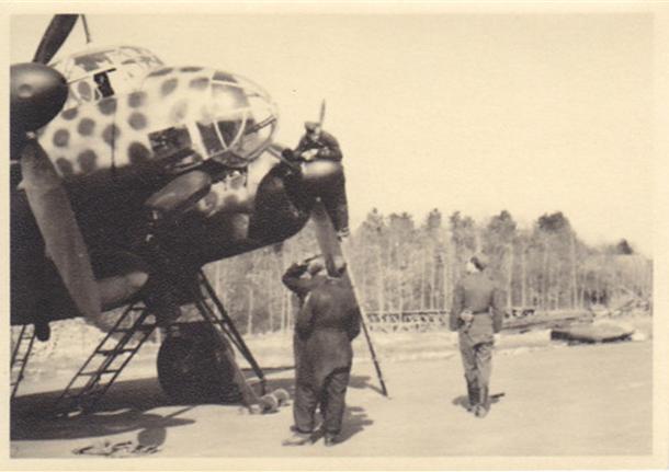 A series of views below depicting Staffelkapitän Lt. Günther Schwanecke of JGr.Ost seen during late 1944 working alongside his mechanics on a Bf 109 G-12 of 4./JGr Ost in Weidengut (Schlesien). Staffelkapitän Schwanecke had been challenged by his 'black men' to get the machine back to airworthy status and then fly it! Schwanecke survived the war with around ten Luftsiege and features heavily in Erik Mombeek's histories of JG 5 and JG 4.