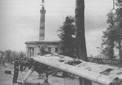 Lachmund mentions discussions via telephone from the 'air traffic control' command-post at the Siegessäule (Berlin's Victory column) between Ofw Böhm and the Bunker in the Reichskanzlei. There was apparently some dispute over the passengers to be flown-out, chiefly because Hanna Reitsch wanted to fly out the Ritter von Greim herself at the controls of the Arado Ar-96, and not leave Berlin as a passenger on this Ju-52 flight. Eventually, the Ju 52 boarded only a few other wounded passengers but not the VIPs. Because of damage to the 'runway' from shelling, the Junkers transport had only 400 metres in which to get airborne. It is worth noting perhaps that Deutsche Lufthansa record the minimum take-off distance for their lighter (unarmoured and unarmed) Ju 52/3m as 500 metres..