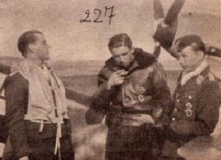 "...a lull in the fighting! ..after a hard-fought combat, that cigarette tastes just fine, as the victor in over two hundred air battles has downed four more Soviet aircraft on his birthday......PK pictures Kriegsberichter (war reporter) Berger..."