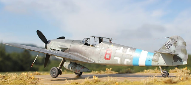 Uffz. Hans Dahmen's Bf 109 G-10 " Red 8" 'Gisela' 2./ JG 300 from the Revell 1/32 scale kit by Franck Oudin, finished with Barracuda Studios and MDC resin bits, markings painted with Miracle Paint Masks.