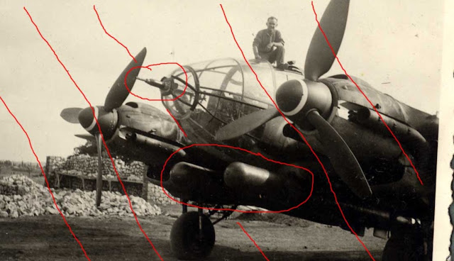 3./ KG 26 He 111 torpedo bomber carrying two LT F5b torpedoes and seen taxiing out for a sortie from Salon (Provence), southern France, spring 1943 according to the original album caption. Superb Mäandertarnung camo scheme. Note the yellow wingtips, rear fuselage band and the spinner ring. Click on the images to view large