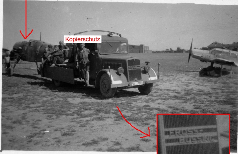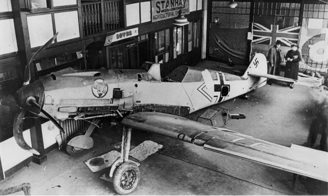 Oblt. Gunther Bode's Stab I./ JG 27 Emil on display at Stanhay's garage in Ashford, Kent during 1940