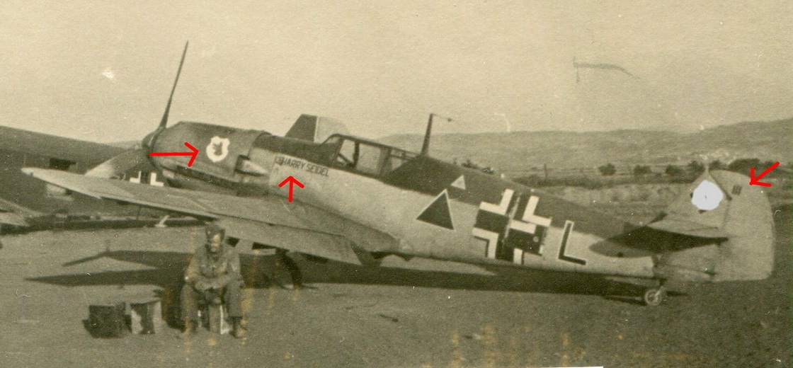 Below; despite the Schlacht triangle marking of II./ LG 2 this Emil belongs to III./ JG 77 - note the wolf's head badge on the cowling. Seen at Malemes, Crete 1941, note three Abschußbalken on the rudder. The name 'Seidel' below the cockpit probably recalls Ofw. Albert ' Harry' Seidel who had been KIA on 15 March near Kent/Dungeness in aerial combat with 615 Sq. Hurricanes. His machine was WNr.3725 "schwarze L" of 5.(S)/LG 2.. Original picture source, Michael Payne via Omert in "More Emils, More markings", Aviation News 7-20 May 1983, also in Prien JG 77 Vol 1. Bottom, Von Werra in front of a JG 53 Friedrich
