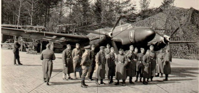 offered via Marco at koelsch333 Ebay sales in November 2016 and sold for 420 euros! Amazing especially given that the image was previously published in Volume I of the Stipdonk/Meyer series. Note the machine in the middle - closer view below - an NJG 1 Bf 110 C-6 coded "G9+EH". The barrel and housing of a MK 101 30 mm cannon installation can just be made out under the fuselage. The photo was taken in early 1942 during a sortie from Venlo in the Netherlands. Three victory markings can be discerned. The Czech firm Eduard produce a limited edition kit of this rare variant with a neat resin reproduction of the cannon and belly fairing.