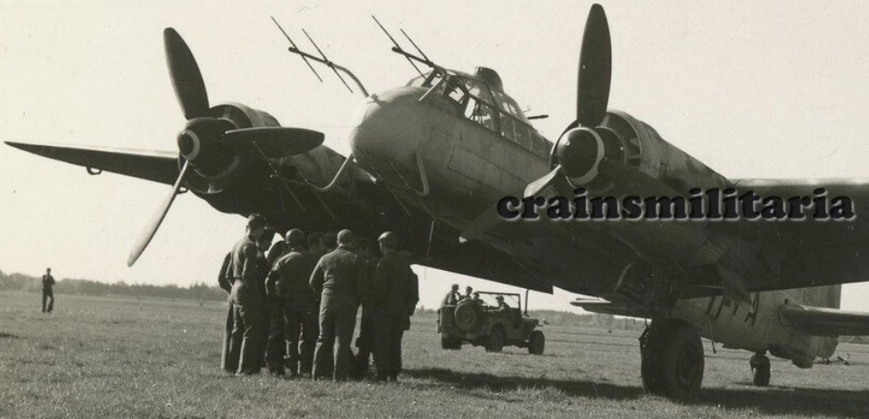 Two nice views of a Ju 88 G-6. Note the flame dampers on the Jumos and the prominent supercharger intake. Starboard wing lower surfaces appear to be in black. Two key 'identifiers' for a G-6 are the angled antenna (with the later SN 2d -frequency V AI radar) and the absence of a lower fuselage gondola. Naxos fairing is visible on the canopy.