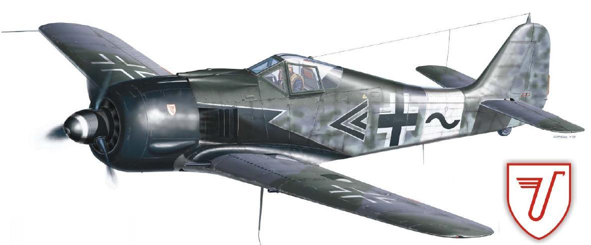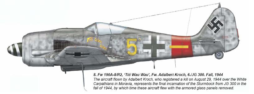 In late May 1944, all 68 pilots of the unit were assembled to hear the Gruppenkommandeur, Hauptman Wilhelm Moritz read out the Sturmgruppe Oath: “We swear to fight in defense of the Reich true to the principles and rules of engagement of the Sturmgruppe. We know that, as pilots of the Sturmgruppe, we are called upon in a special way to protect and defend to the utmost of our ability the population of our homeland. We undertake that, on every mission resulting in contact with four-engine bombers, we shall press home the attack to the shortest range and - if unsuccessful in shooting down the enemy by gunfire - we will destroy him by ramming.” This oath was largely superfluous since the Fw 190's 30mm cannon could bring down a bomber with only a handful of shells at close enough range.