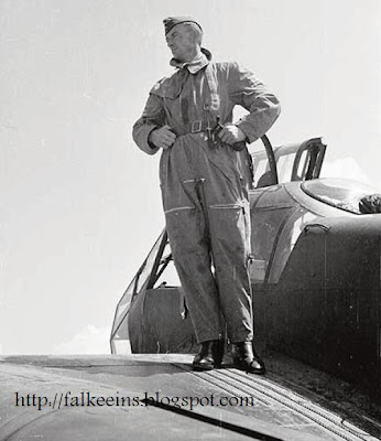 “.. over the Bay of Tunis we ran into a group of British Martlet carrier-borne fighters. Reinert manoeuvred onto the tail of the rearmost machine, its pilot utterly oblivious to our presence. I watched over Reinert’s shoulder as he positioned himself for the ‘kill’. At one moment I got carried away and yelled into his ear to open fire. At that moment Reinert squeezed the trigger. His first burst was inconclusive. He fired again hitting the Martlet in its port wing and cockpit. The British machine rolled into a spin and slammed into the sea..”