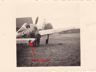 Two images of a crash-landed LG 2 Schlacht 109 came up on eBay recently below (thanks Chris!) - note the rather rare 'bear-wielding-axe' emblem of 5.(Schlacht)/LG 2 on the cowling plus the Schlacht triangle. The 'bear' is actually depicted on the emblem chopping up an umbrella (presumably Chamberlain's?), a throw-back to LG 2's Jabo Battle of Britain campaign...