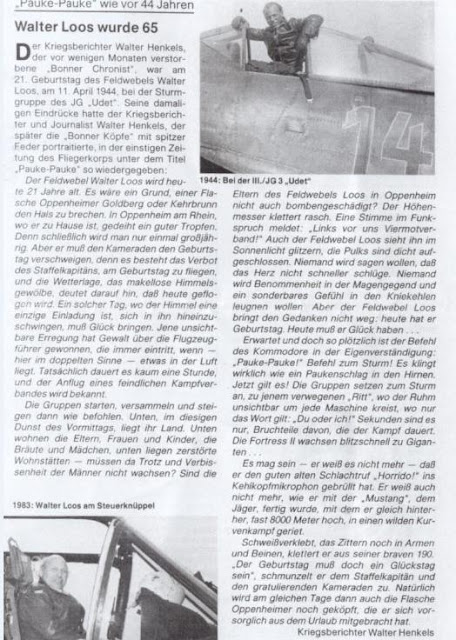 " War reporter Walter Henkels spent 11 April 1944 with the Sturmgruppe Udet - the date of Walter Loos 21st birthday and recorded his impressions under the title 'Pauke-Pauke '..........