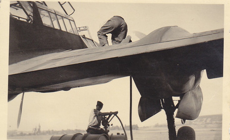 Me 110 C of I./ZG 76 photographed in Kielce, Poland in September 1939 being refueled -Wart Hans Grohmann on the wing.