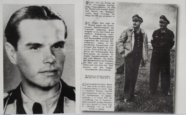 Kott joined 10. Staffel of JG 3 at Salzwedel in early 1944 for his first combat posting and flew as Rottenflieger to Walther Hagenah. On 19 May 1944 he brought down a B-17 with a frontal attack over Berlin before being shot down in turn by a P-51. With his doomed fighter in its death dive, the hapless pilot struggled to extricate himself from the cockpit but with his feet caught fast he quickly lost consciousness in the rarefied atmosphere nine kilometers up. He learnt later that he had come free at a height of around 1,000 metres but had no recollection of pulling the rip cord. He rejoined his unit after a three-day stay in hospital at Brandenburg Briest. Kott's unit then converted to the Sturm role flying the heavily armed and armoured Fw 190 Sturmbock bomber killer. IV (Sturm)./JG 3 was briefly deployed to Normandy to combat the Allied landings. On 7 July flying out of Illesheim Kott's Sturmgruppe sortied on the 'infamous' Oschersleben 'Blitzluftschlacht' which saw IV./JG 3 claim at least 30 US 8th AF bombers shot down. Kott's machine had engine problems and he saw no action. Kott's interview with Cronauer throws new light on his subsequent transfer from JG 3 to JG 4 - an accident while taxiing in after combating 8th US AF bombers over Memmingen, Bavaria on 18 July 1944 resulted in the death of a fellow pilot. And while Kott was exonerated of any blame at the subsequent court martial thanks to the witness statement of his friend Walther Hagenah his relationship with his 10./ JG 3 Staffelkapitaen Hans Weik never recovered. He transferred into the newly established II. Gruppe of JG 4 under von Kornatzki, signed the Sturm affadavit, pledging to engage in close-quarter combat with the bombers and/or ram them should a 'conventional' attack fail. And while Kott never carried out a ramming attack, " I almost certainly would have done if the occasion had presented itself..." Flying out of Welzow Kott claimed a B-24 on 26 September 1944 over Ludwigsau, a B-17 on the following day and a further B-17 on both 6 and 7 October 1944. Von Kornatzki at this point recognised that Kott was at the end of his tether and took him off operations for two weeks before a brief posting as Jagdlehrer (fighter instructor) in Liegnitz retraining Luftwaffe bomber pilots to master fighters. Kott returned to IV./JG 3 in early 1945 by which time the Sturmgruppen had been re-deployed as ground attack straffers against the on-rushing Red Army in front of Berlin...